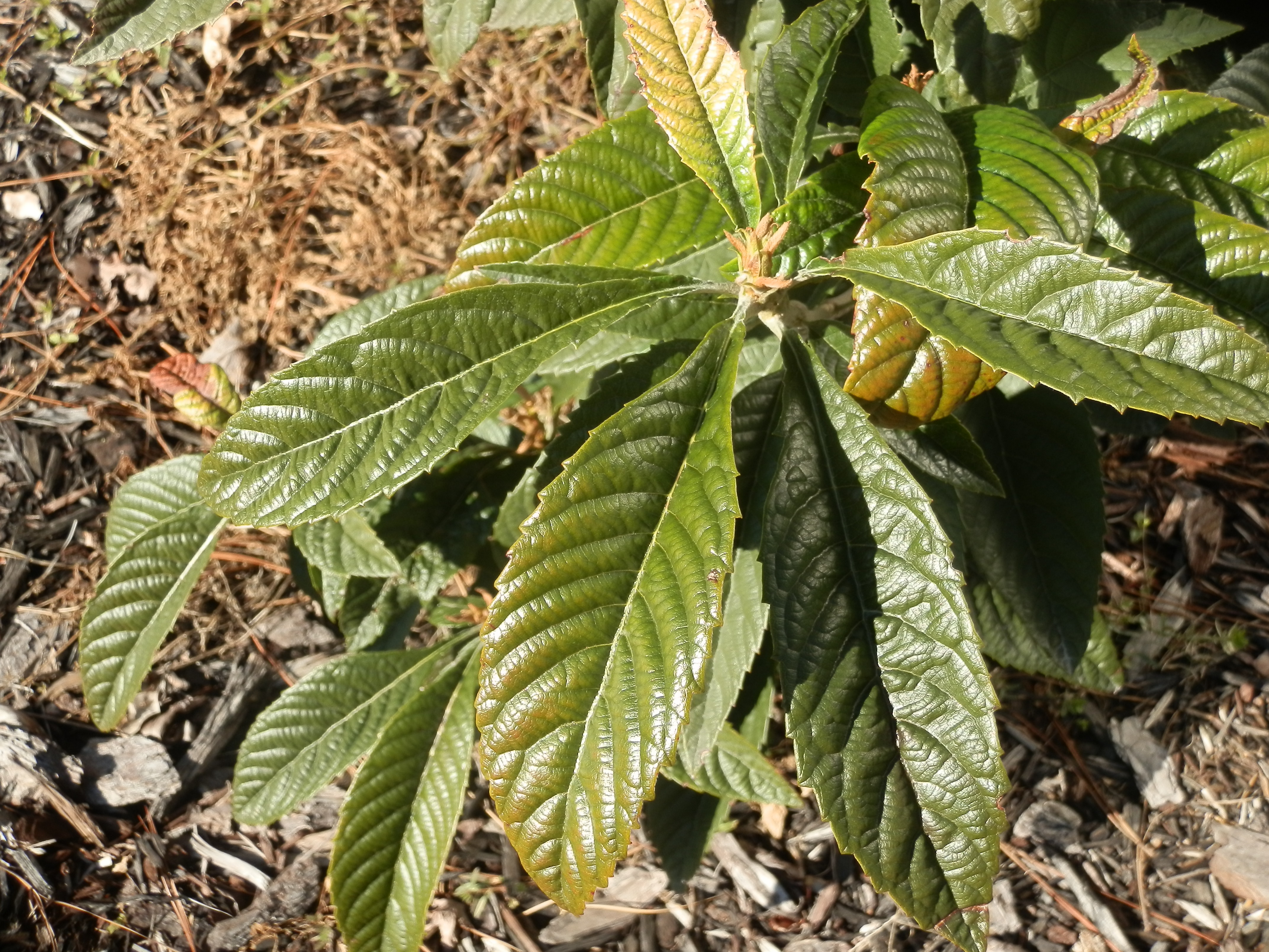 Trees may reach heights of 30 feet, but most of the mature specimens we saw were less than half that. Leaves are fairly large. Some were close to a foot long and three or four inches wide in the center. Leathery evergreen foliage is dark green and glossy on the upper surface with white to rusty colored hairiness on the underside. New growth is sometimes tinged with red.