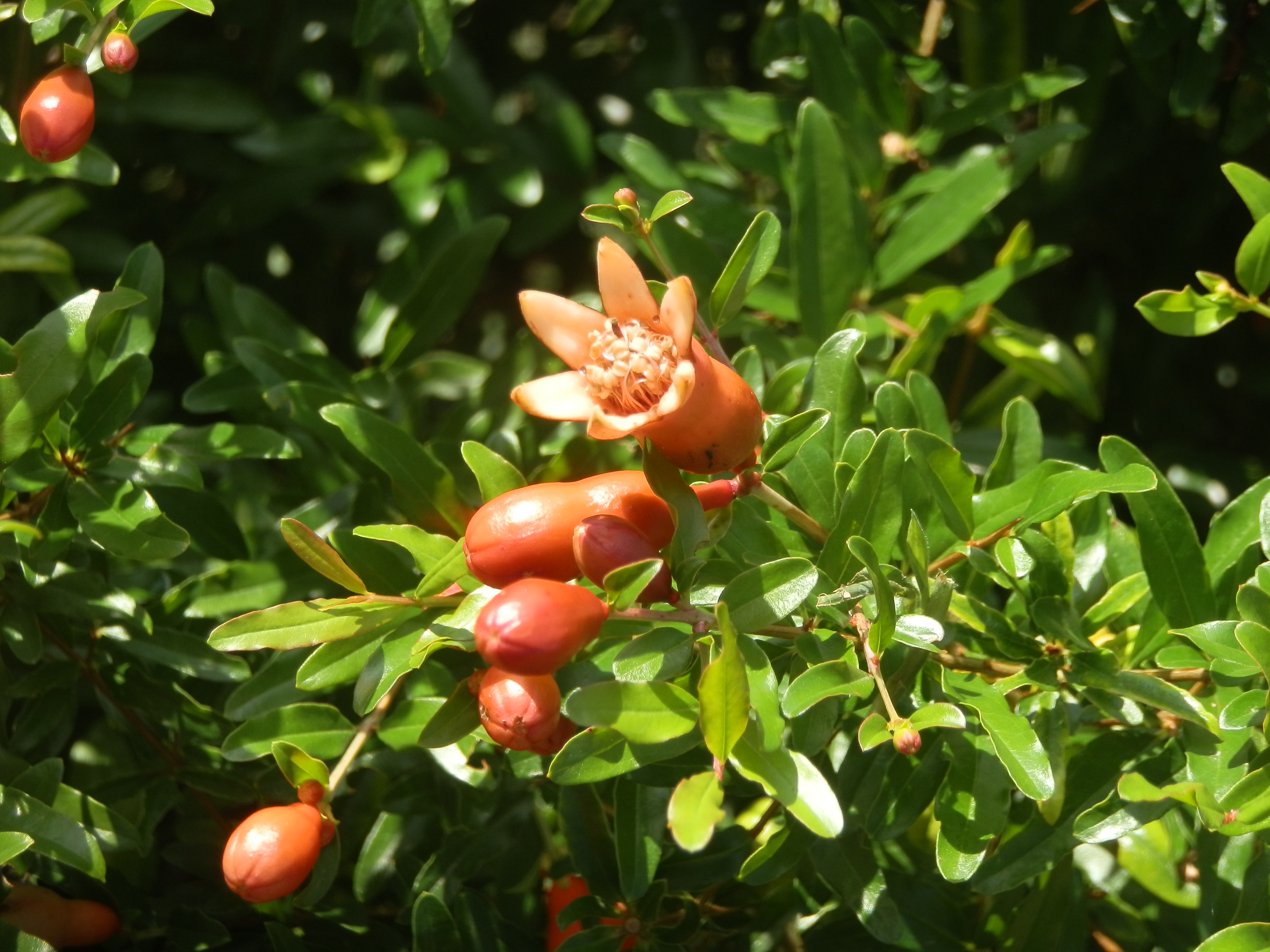 The plant to which I refer is the pomegranate. Drought and salt tolerant, they are well adapted to our sandy soils and thrive in full sun. Soil pH should not be acid like for blueberries and they respond well to fertilizer.