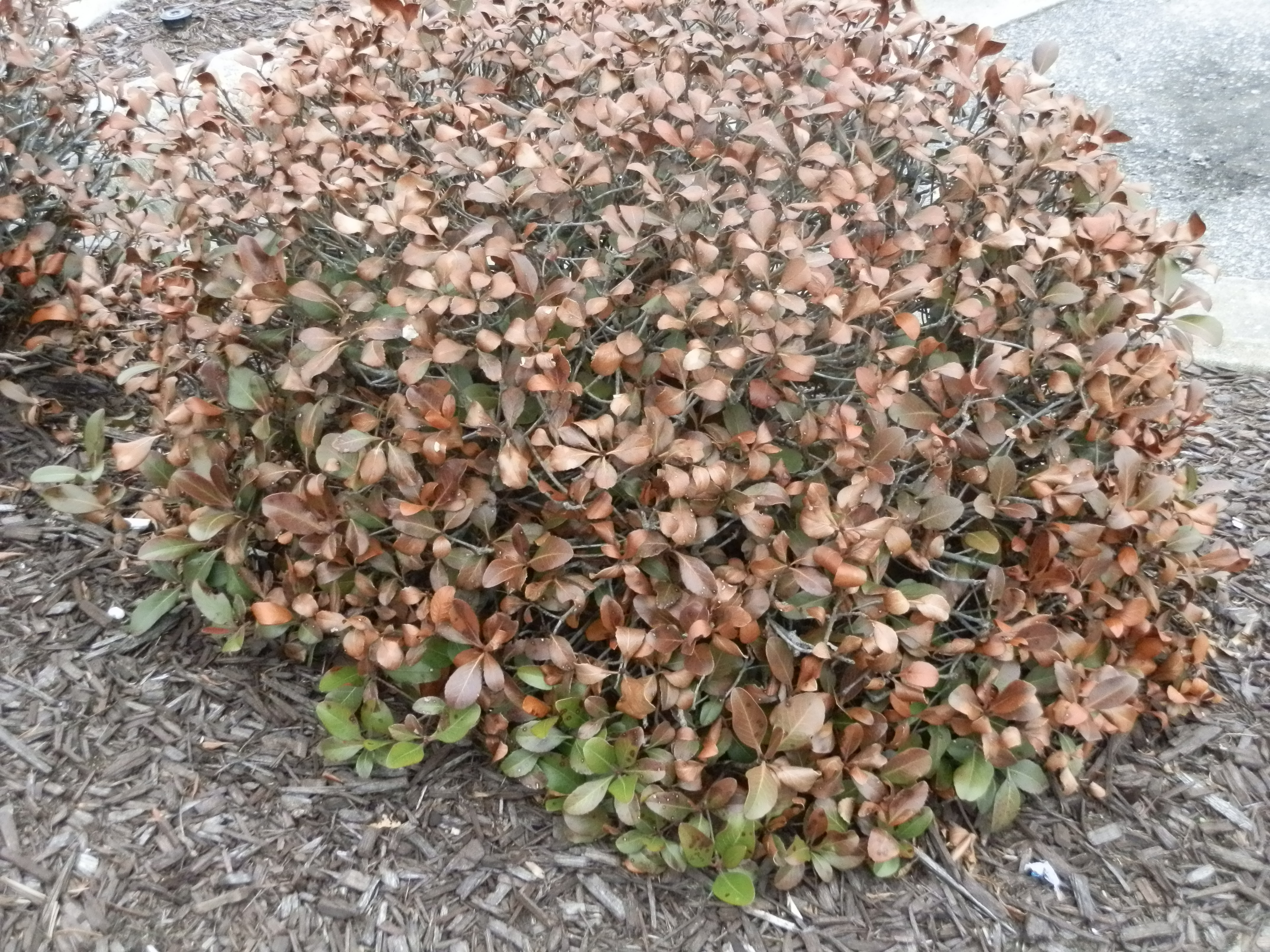 snow may have saved the base of this Indian Hawthorn.