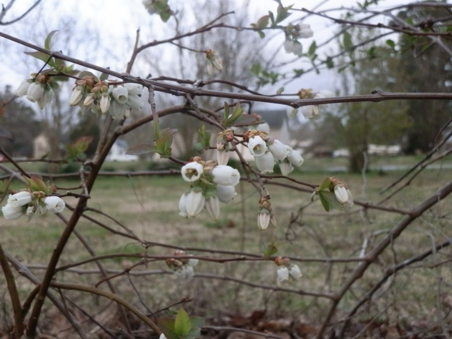 Blueberry blossoms among muscadine grape vines