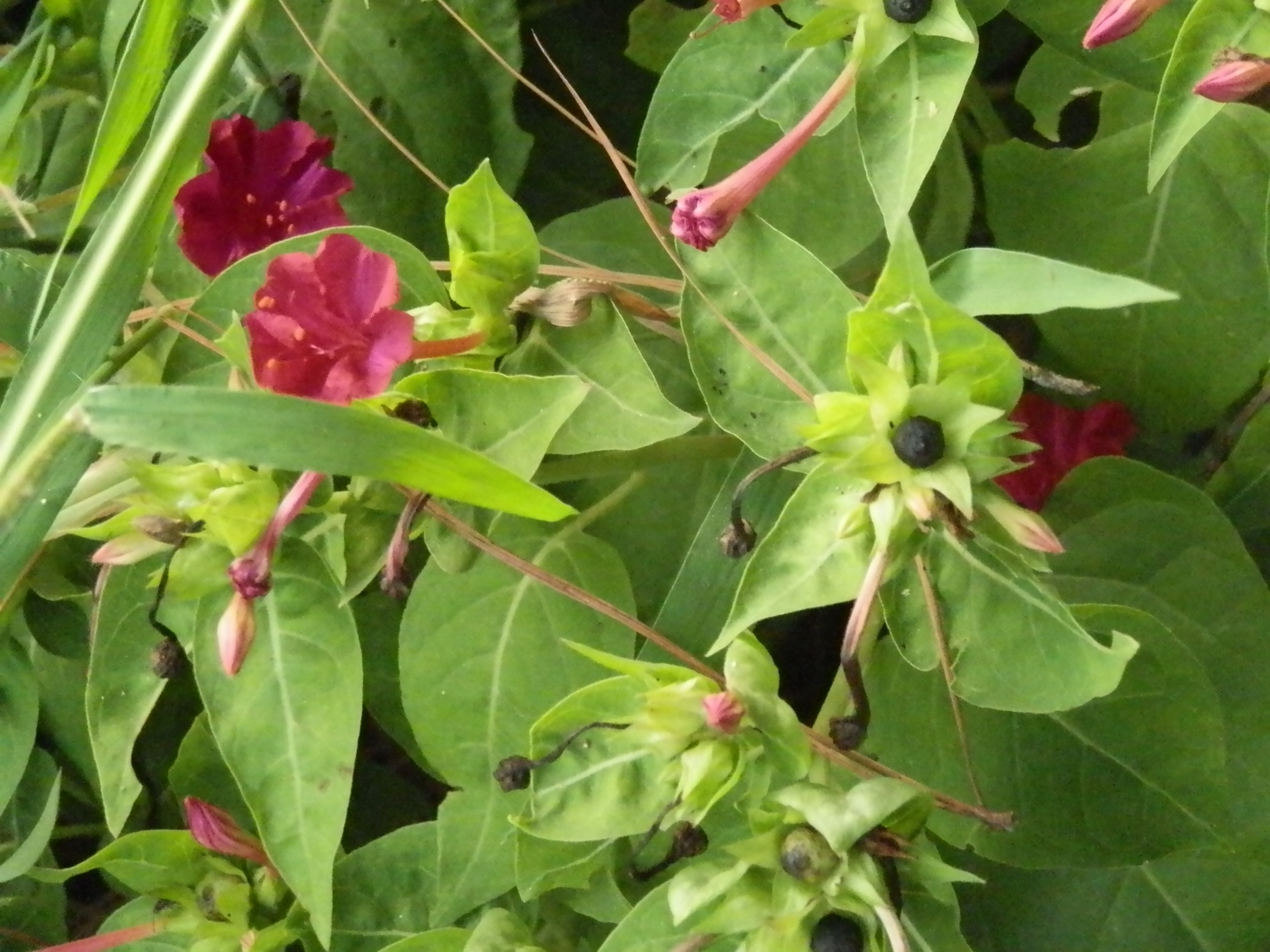 Four o’clock flowers and shiny black seeds