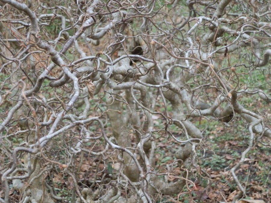 Corkscrew willow and Corkscrew hazelnut have striking winter interest