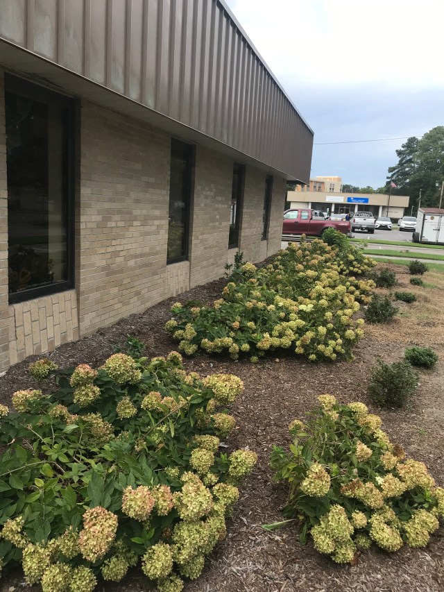 Bed full of hydrangeas at the Pasquotank County Extension Office