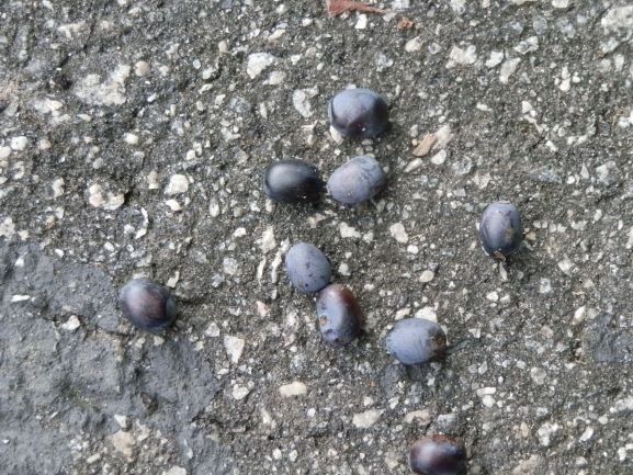 Another name for this tree is sour gum and one taste of the fruit will confirm that. These single-seeded blueberry sized fruits (drupes) are edible, but be ready to add some sugar. They make a pleasant tasting and attractive jelly and often it’s easy to collect enough for a batch. Only some macho survivalist or woodland creature would ever eat a whole lot of them raw. I’ve been out in the woods hunting and thought a few might quench my thirst. They don’t.